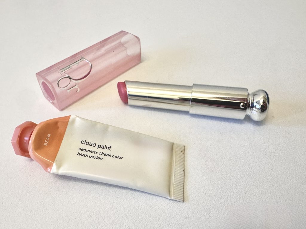 My current staples? A cheek tint such as Glossier Cloud Paint in Gleam, and Dior Addict Lip Glow in Candy, which looks like I’ve just bitten into some raspberries whilst still not being a full-on colour pop. It’s a tiny physical transformation that makes me feel fresh, feminine, and a little bit magical.